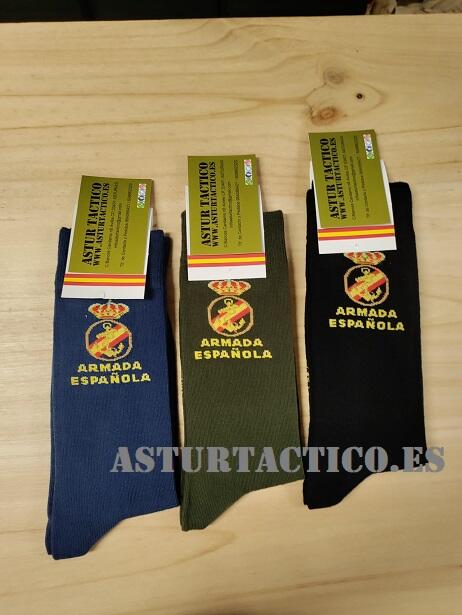 Par de calcetines de la bandera de España y emblema de Armada Española. Composición: 82% algodón peinado, 15% poliamida, 3% elastano. Gran calidad. Fabricado en España. Nº 41-45 Disponible en varios colores
