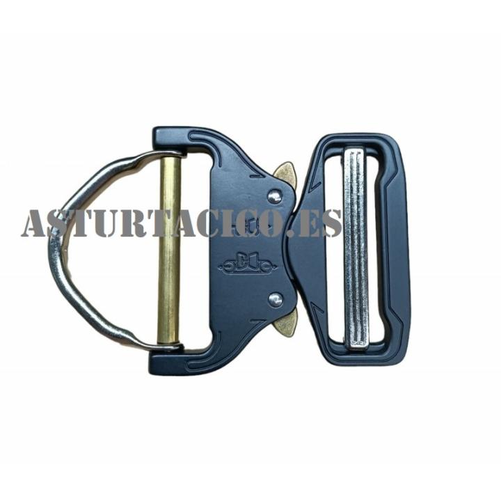Hebilla tipo COBRA . Con cierre de seguridad.Color negro y dorado. Fabricado en metal. Para dinturon de 4cm