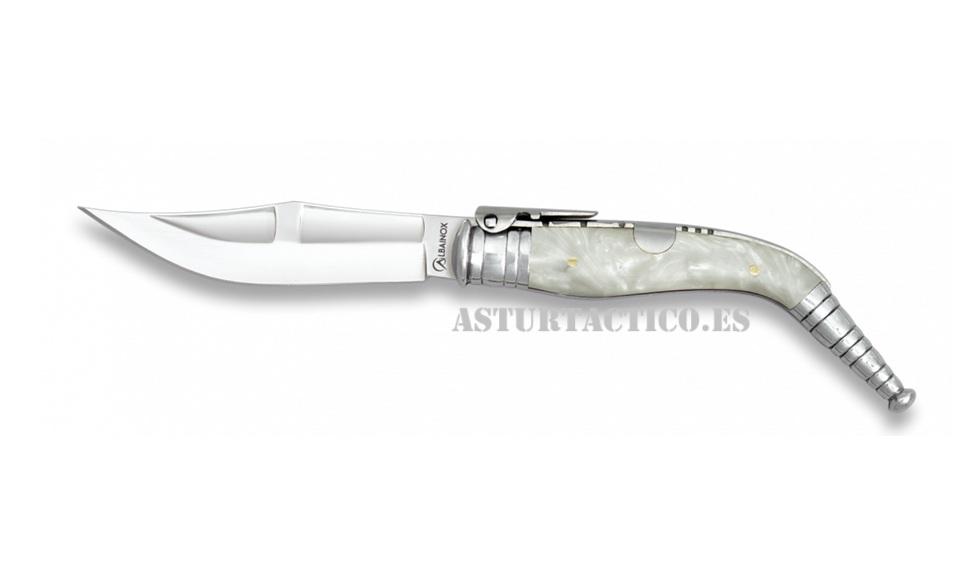 Navaja bandolera con mango imitacion a nacar blanco. No incluye funda