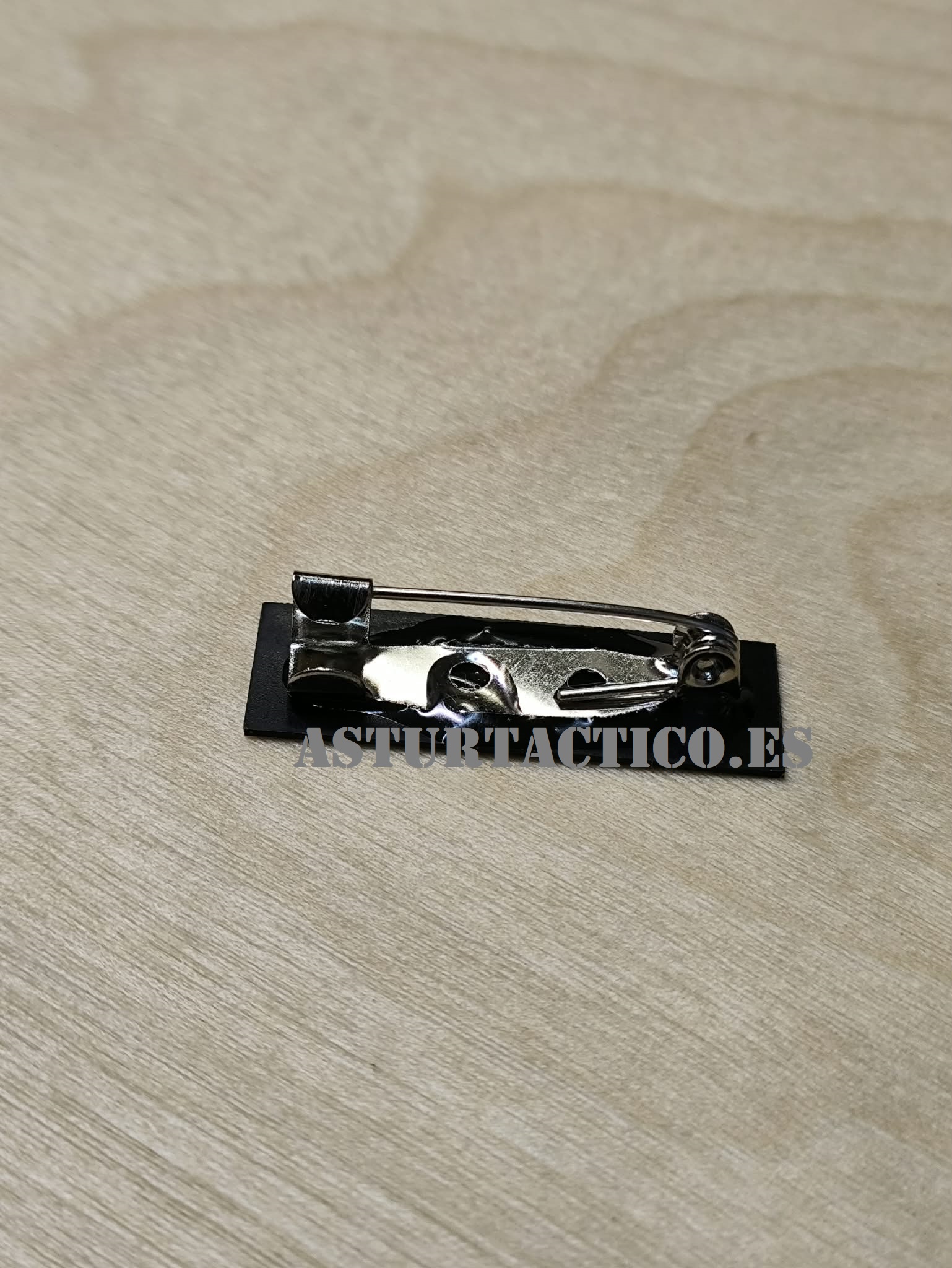 Plaquita dorada con numero de identificacion profesional en negro, de POLICIA NACIONAL. Con imperdible trasero. 4 UNIDADES. (Cumple con las medidas y normativa de uniformidad de Policia Nacional). Plazo de entrega 10 dias. medida 3×1 cm